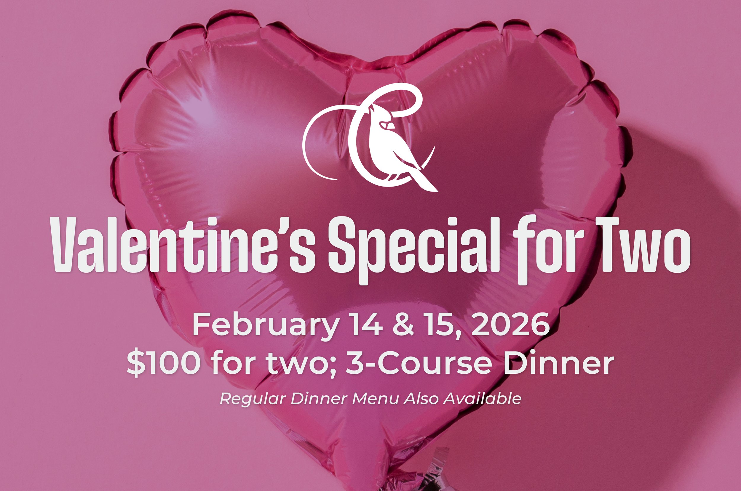 Valentine’s Day 3-Course Menu will be available February 14 & 15, 2026, in place of our $45 3-Course Special.
